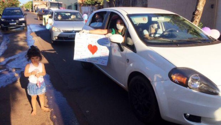 Na tarde dessa segunda-feira, 3, As professoras do Maternal I integral da Escola Municipal Branca de Neve realizaram uma carreata para visitar os alunos que estão em casa, com aulas on line, devido à pandemia da Covid. Usando EPIs e observando o isolamento social, mataram a saudade, levando presentinhos para as crianças.