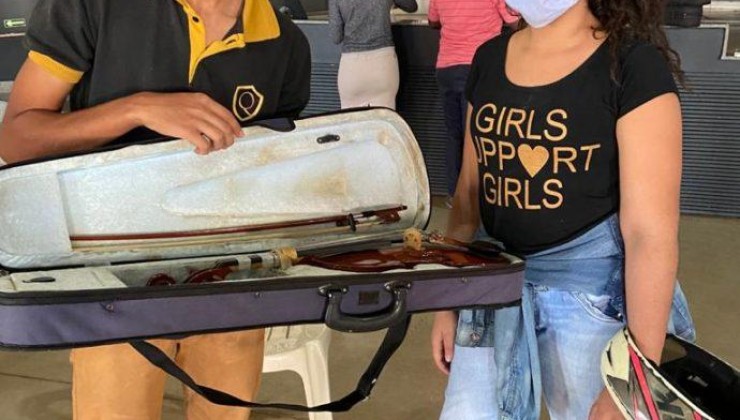 Julho de 2020 – Crianças e adolescentes entusiasmados ao receberem em mãos um violino, viola ou violoncelo para aprender música. Pais satisfeitos e agradecidos pela oportunidade que o Projeto Maestro Quianzala Convida está oferecendo em Uberlândia (MG).
